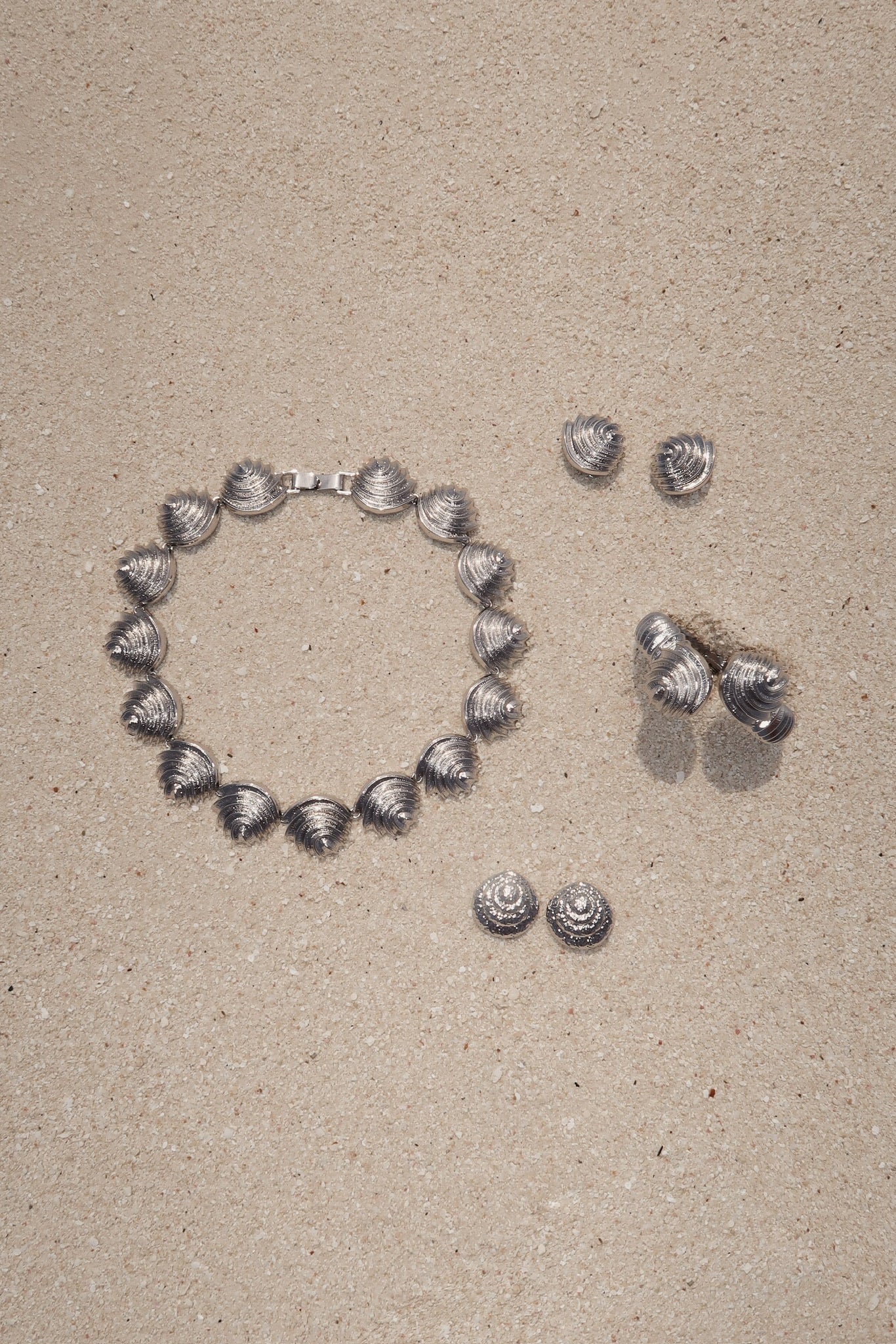 The Antigua Cuff is a chic statement piece designed to elevate your style. Crafted with rhodium-plated brass, its textured shell design exudes sophistication and effortless charm. Bold yet refined, this adjustable hinge cuff ensures a secure, comfortable fit, making it the perfect accent for any look.