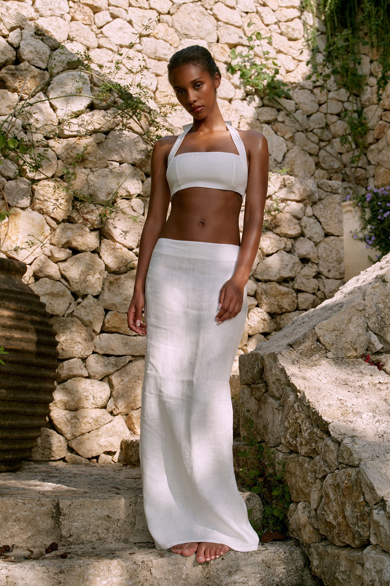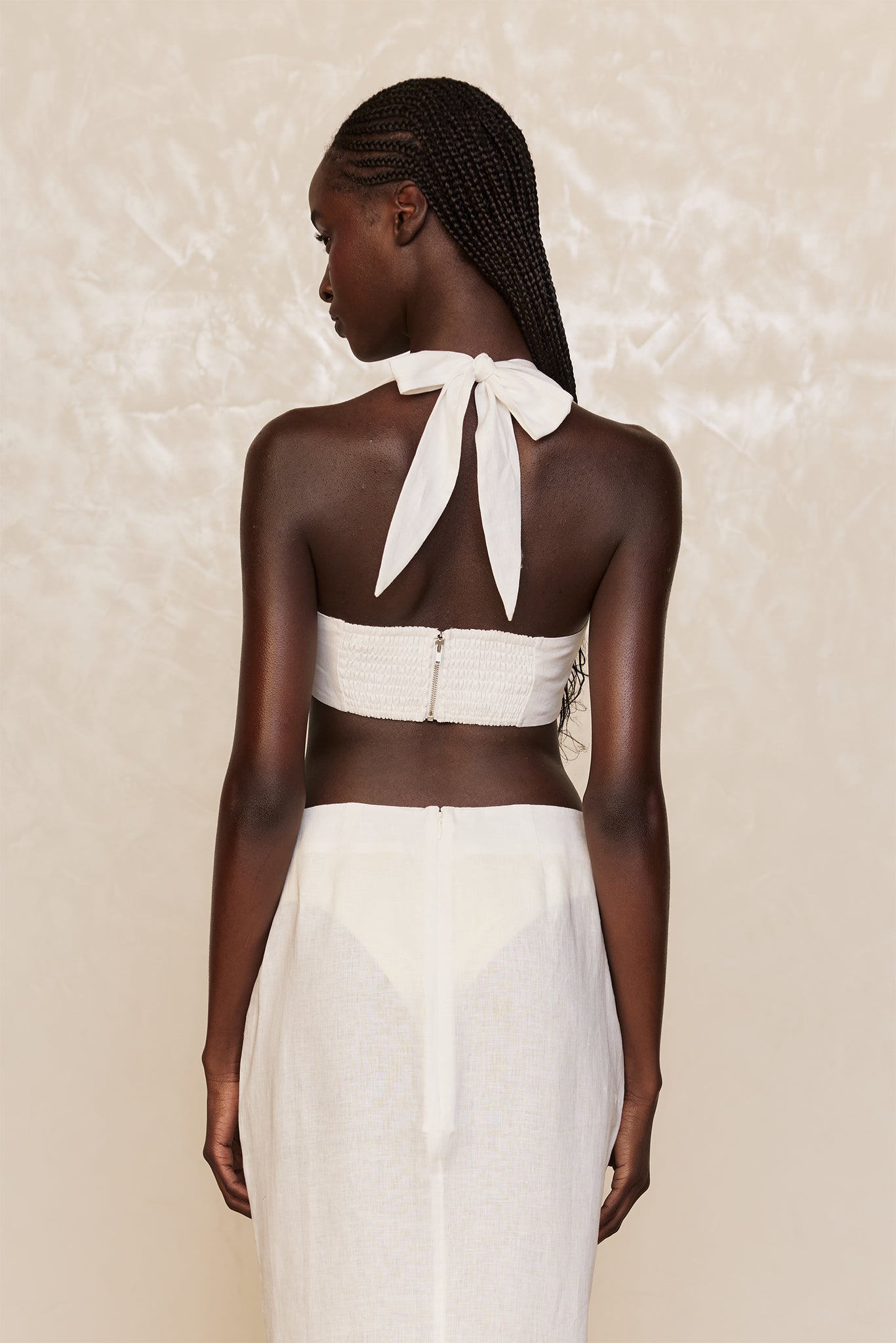 The Montserrat Top brings all the elegance of the dress into a chic, cropped style. Featuring a flattering halter neckline with adjustable ties and a lined bust for comfort, this linen top is as versatile as it is stylish. Complete the look with the Fontelina Skirt for effortless summer sophistication.