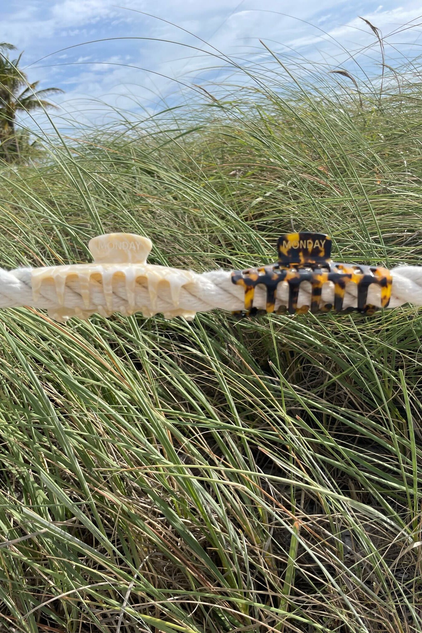 Keep your strands in place with?the?Staniel Cay Hair Clip. Made for a?perfect and effortless on the good look, this chic hair clip is engraved with our Monday logo and comes as a set with two different colors – a tortious and marble clip?option.Features:Width: 3 3/4″ ClipEngraved Monday logoTortoise / Marbled Acetate materialPack of two