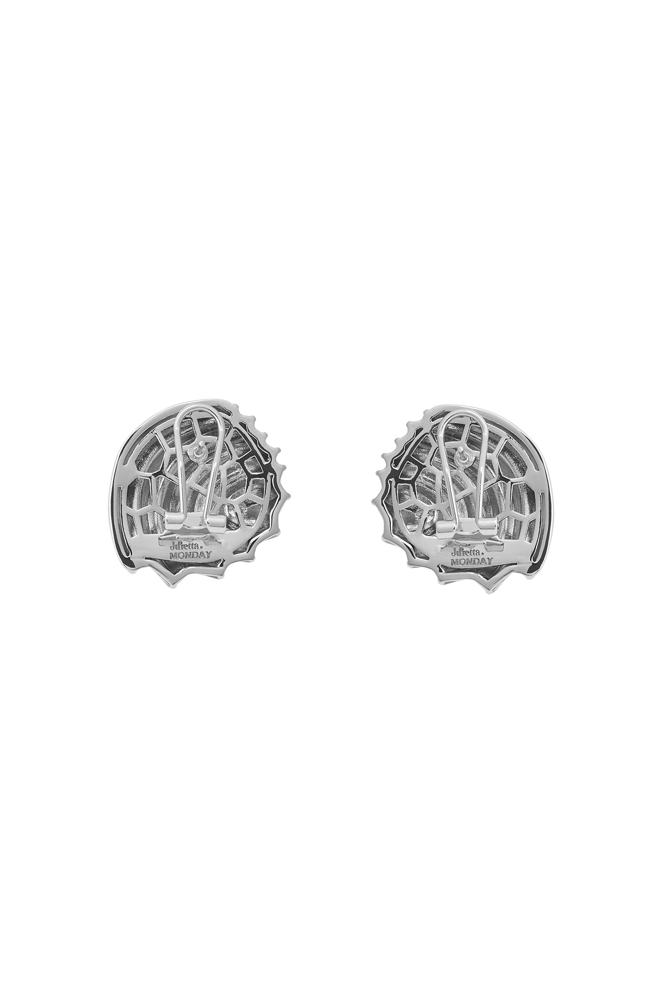Discover timeless elegance with these rhodium-plated brass shell earrings, featuring a polished silver finish. Lightweight and impeccably crafted, each pair is designed with a stud backing for pierced ears, offering a sophisticated accent that effortlessly enhances your look.