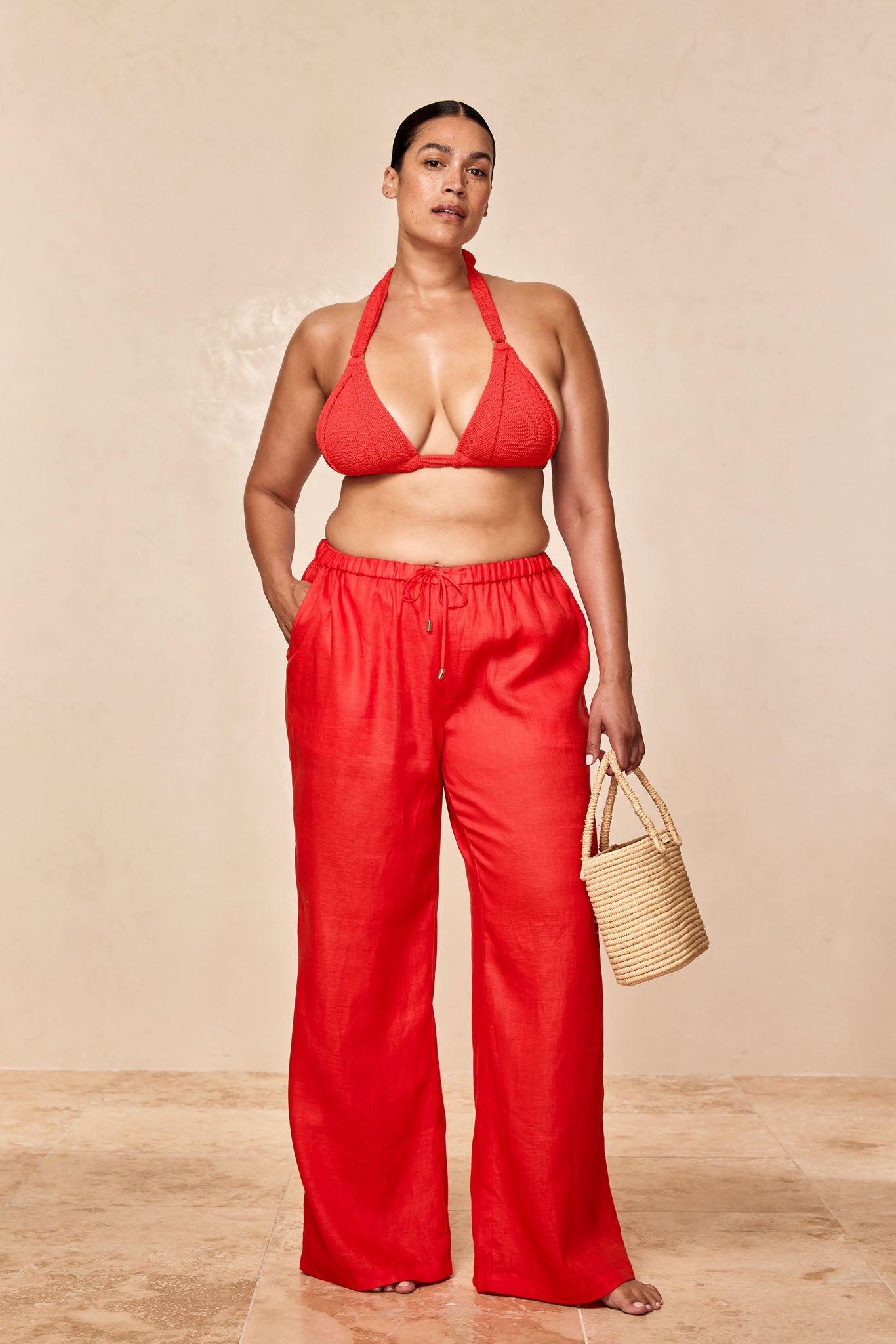 Elevate your beachside elegance with the Tuscany Pant, a luxurious fusion of comfort and style that embodies the essence of leisurely sophistication. These pants feature a drawstring elastic waist adorned with our Monday gold cord ends, that adds a playful touch to your seaside ensemble. These pants evoke an air of ethereal beauty whether you’re lounging under swaying palm trees or exploring quaint coastal towns.